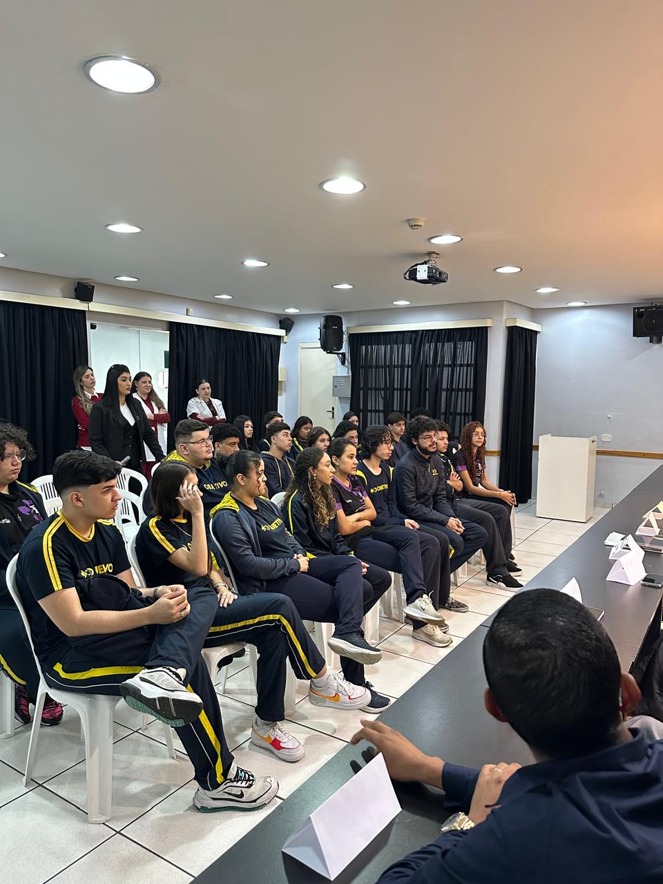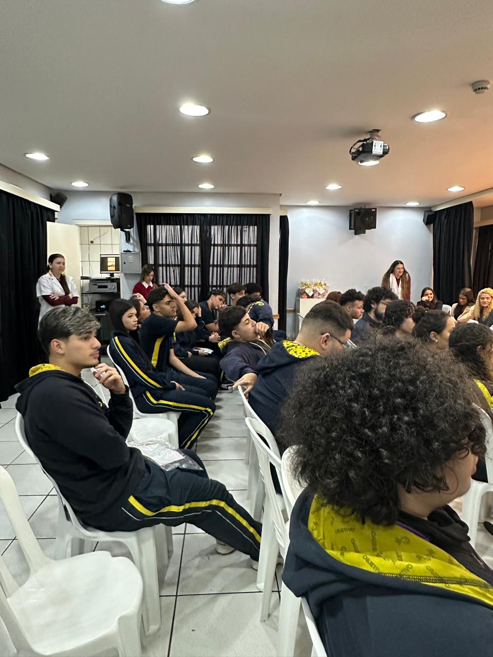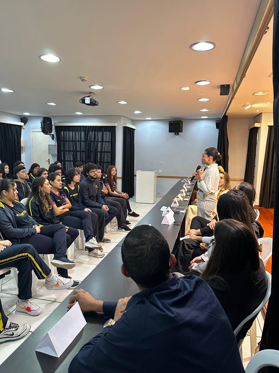 Durante o workshop, os convidados compartilharam suas vivências, desafios e conquistas, abordando desde o processo de escolha da carreira até as experiências no ensino superior e o início da vida profissional. O diálogo foi uma oportunidade para os alunos compreenderem melhor o caminho que leva à definição de uma profissão e a importância do autoconhecimento nesse processo.