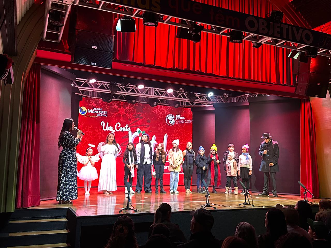 Após as apresentações de dança, o evento foi finalizado com chave de ouro, com a peça teatral “Um Conto de Natal”, encenada pelos estudantes do Fundamental 1. Sob a direção do professor Pedro Fonseca, os pequenos atores protagonizaram uma apresentação divertida, cativante e repleta de emoção, arrancando risos e também tocando o coração de todos os presentes. Foi, sem dúvida, uma noite especial.