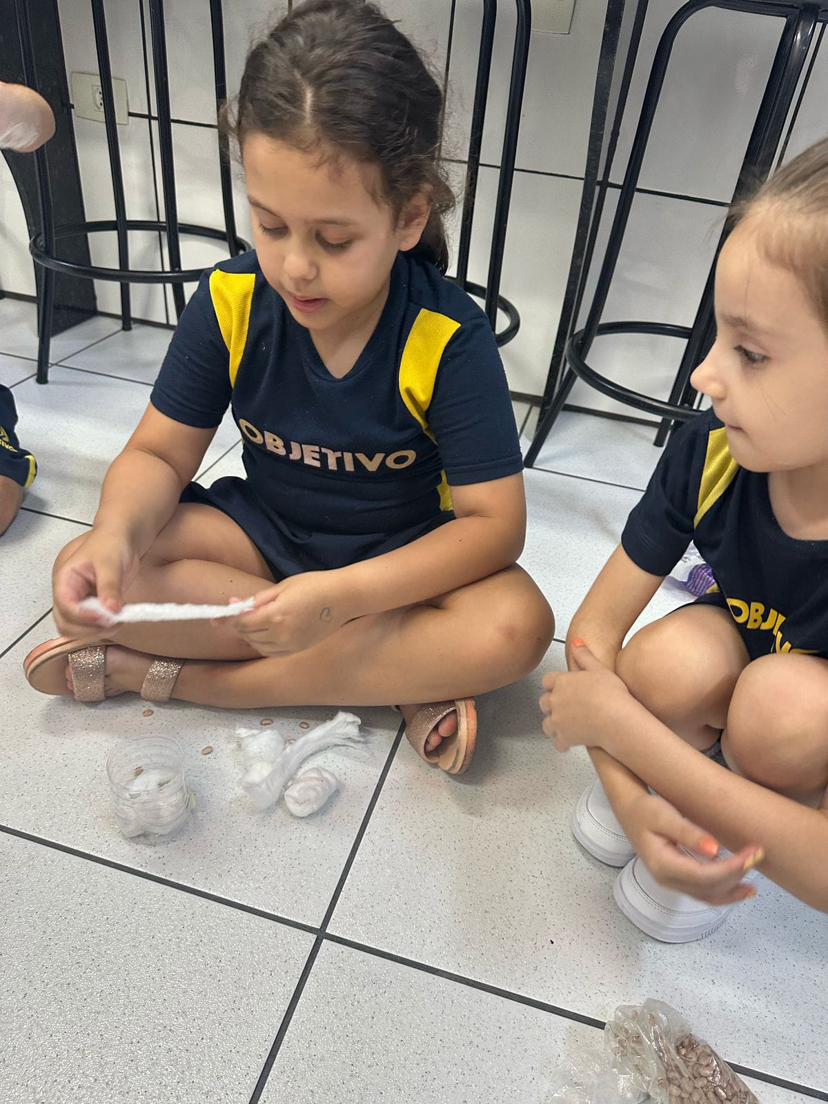 Os alunos do 2.º ano A do Ensino Fundamental 1 participaram de uma atividade prática para acompanhar o crescimento do feijão no algodão, explorando de forma lúdica e educativa os fatores essenciais para a vida dos seres vivos.